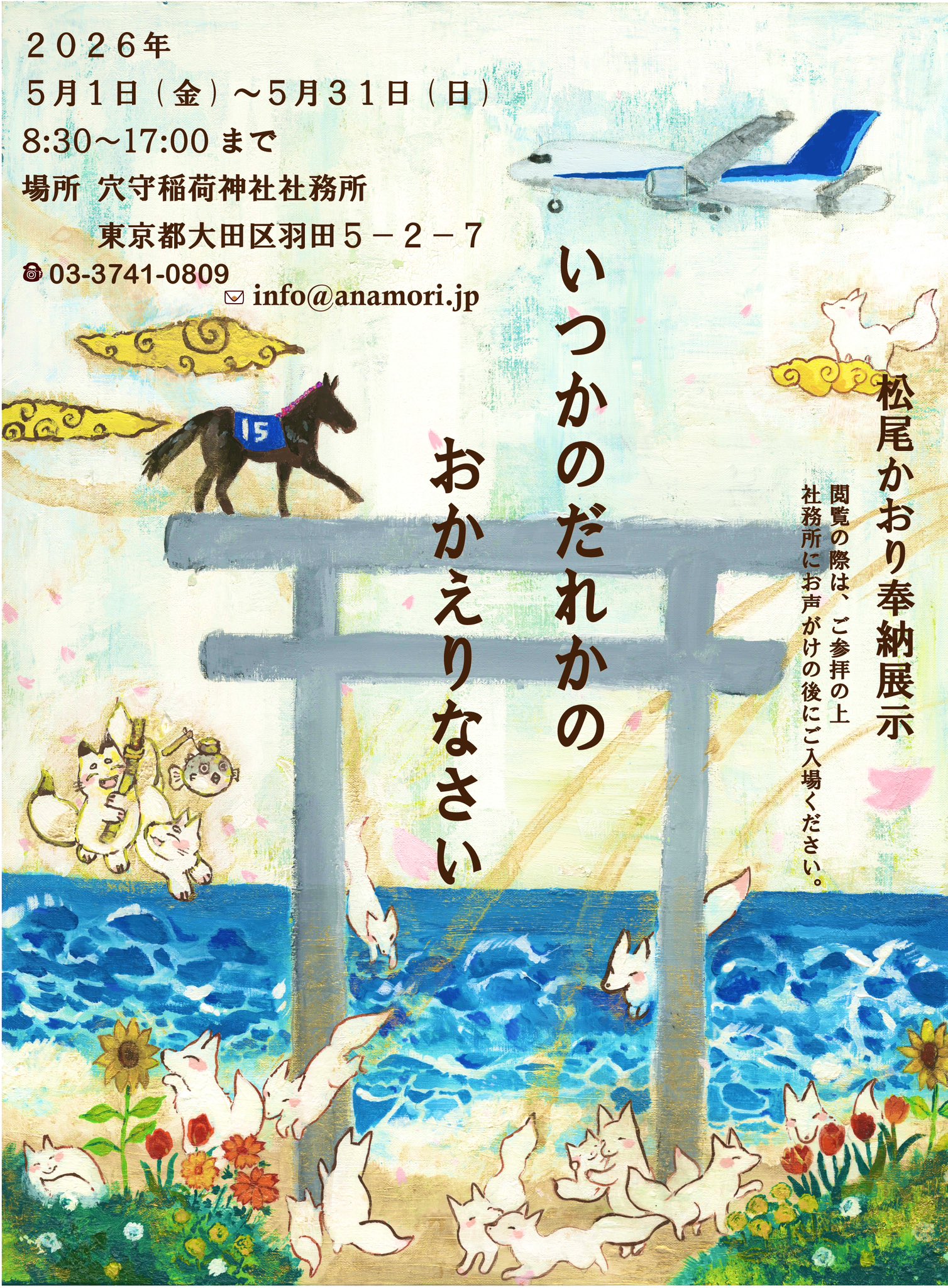 2026年(令和8年)5月1日(金)〜5月31日(日)に穴守稲荷神社社務所にて、イラストレーター 松尾かおり氏の奉納展示を開催致します。